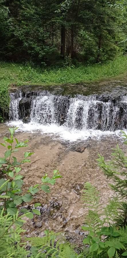 Trasa zachwyca na każdym kroku, a prawdziwą wisienką na torcie jest wodospad na rzece Jeleń. Może nie jest to taki próg skalny, jaki znamy z gór, bo liczy zaledwie 152 cm, ale jest naprawdę wyjątkowy. Można zrobić tu sobie krótką przerwę na orzeźwienie, napicie się wody, czy na pamiątkowe zdjęcia. Od tego miejsca udajemy się już szlakiem żółtym, którym wracamy do polany, na której następuje rozwidlenie szlaku, które zostało wspomniane na początku artykułu.