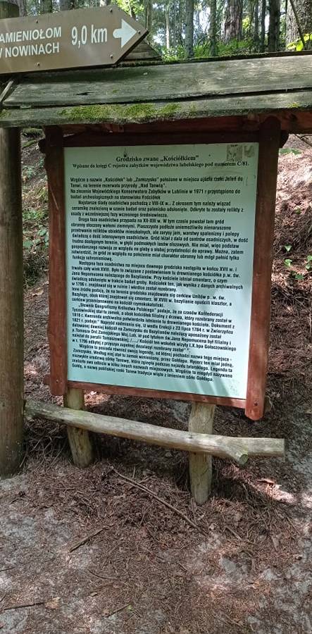 Po około 30 minutach docieramy do Kościółka. Nazwa dla niektórych osób może być nieco myląca, ale warto podkreślić, że nie jest to żadna świątynia, tylko grodzisko. Wzgórze to znajduje się w miejscu ujścia rzeki Jeleń do Tanwi. To na pewno miejsce niezwykłe - najstarsze ślady osadnictwa pochodzą z VIII-IX wieku. Z okresem tym należy wiązać ceramikę znalezioną w czasie badań oraz palenisko odsłonięte. Odkryte tu zostały m.in. relikty z osady z wcześniejszej fazy wczesnego średniowiecza.